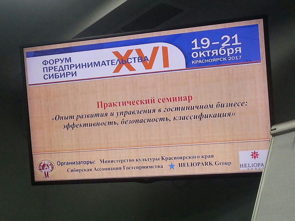 С 19 по 21 октября в Красноярске состоялся XVI Форум предпринимательства Сибири. На котором специалисты компании «Атон-экобезопасность и охрана труда» приняли участие в практическом семинаре «Опыт развития и управления в гостиничном бизнесе: эффективность, безопасность, классификация».